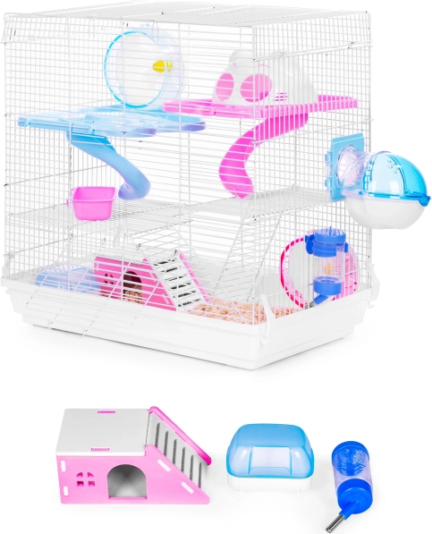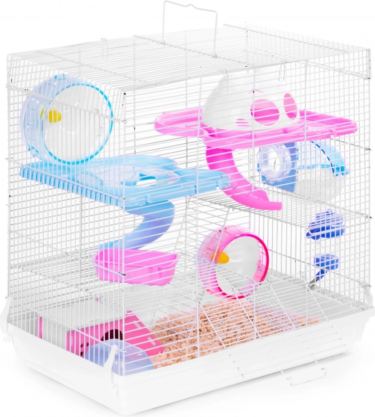 Četri līmeņi, kas savienoti ar diviem slidkalniņiem, un integrēts skriešanas ritenis veicina dabisku aktivitāti un palīdz katru dienu uzturēt grauzējus lieliskā formā.