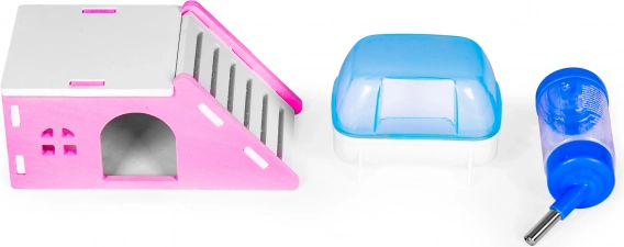 Komplektā ietilpst mājiņa, bļodiņa, dzirdinātava, divi slidkalniņi, četri līmeņi un skriešanas ritenis – viss, kas jūsu mīlulim nepieciešams komfortam, aktivitātei un atpūtai.