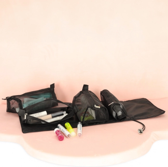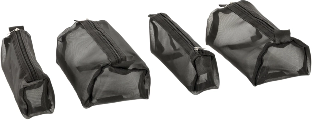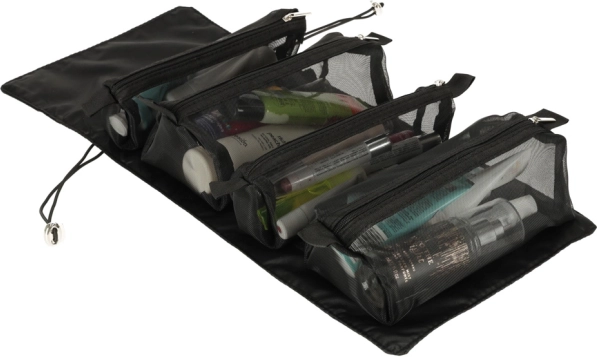 Tīklveida sieniņas ļauj viegli atrast kosmētiku un nodrošina labu ventilāciju mitriem iepakojumiem.