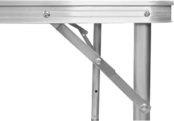 Pēc salocīšanas galda virsma veido kompaktu koferi, kurā var ievietot visus krēsliņus. Aizdares novērš nejaušu atvēršanos transportēšanas laikā.