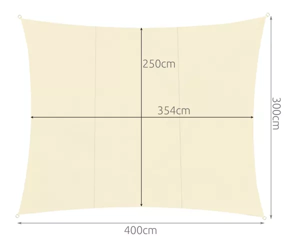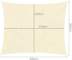 Taisnstūra saules bura 4 × 3 m elegantā bēšā krāsā nodrošina uzticamu ēnojumu un aizsardzību pret UV starojumu. Pateicoties ūdensizturīgam audumam ar blīvumu 180 g/m² tā ātri žūst, ir izturīga pret mitrumu un pelējumu, vienlaikus nodrošinot gaisa cirkulāciju. Ideāli piemērota dārzam, terasei, balkonam un kempingam – ar izturīgiem nerūsējoša tērauda D gredzeniem un auklām ērtai montāžai.