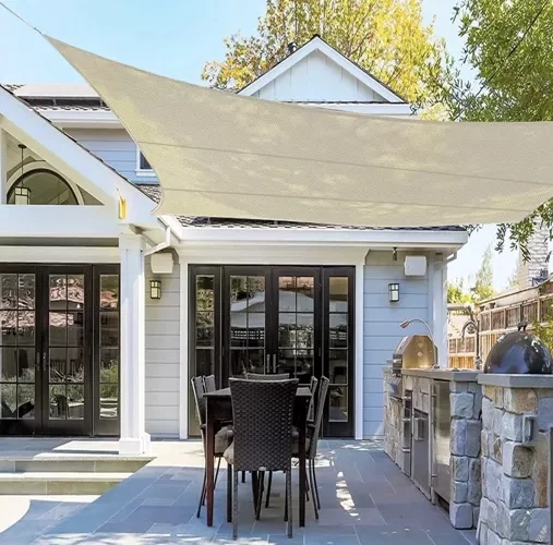 Blīvi austs materiāls samazina saules staru caurlaidību un pazemina temperatūru zem buras, vienlaikus saglabājot gaisa cirkulāciju lielākam komfortam.