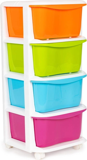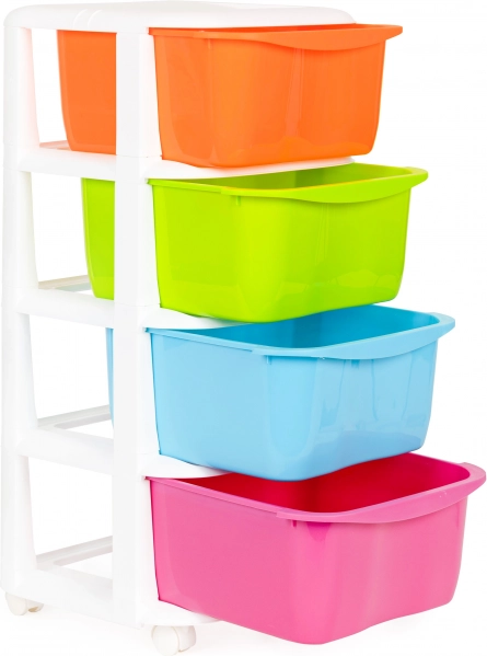Organizators uz riteņiem piedāvā funkcionālu un praktisku risinājumu vienkāršai lietu kārtošanai. Īpaši piemērots bērnu istabām vai vannas istabām.