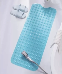 Izturīgais PVC materiāls ir viegli mazgājams – pietiek noskalot ar ūdeni vai noslaucīt, bez īpašu tīrīšanas līdzekļu nepieciešamības. Paklājiņš ir piemērots vannas istabai, dušai, vannai un, pateicoties universālajam dizainam, arī citām mitrajām zonām, kur pastāv paslīdēšanas risks.
