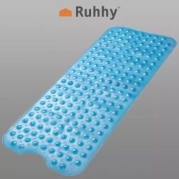 Lielizmēra neslīdošais paklājiņš RUHHY nodrošina stabilu soli vannā un dušā. Desmitiem piesūcekņu pa visu virsmu cieši pielīp pie gludas pamatnes un novērš nevēlamu paklājiņa pārvietošanos. Teksturētā virsma nodrošina uzticamu atbalstu mitrā vidē un palīdz izvairīties no kritieniem.