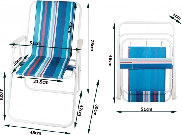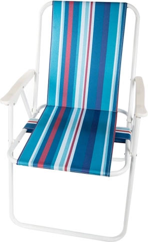Izbaudiet atpūtu pie ūdens, dārzā vai kempingā ar saliekamu krēslu ar svītrainu pārvalku. Pateicoties vieglai konstrukcijai, ātrai salikšanai bez instrumentiem un stabilam tērauda rāmim, tas nodrošina komfortu jebkur – no pludmales līdz teltij.
