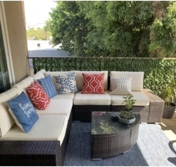 Šis mākslīgais efeju žogs ir ideāli piemērots kā vizuāla clona balkonam, terasei vai sētai. Reālistiskais lapu efekts piešķir ārtelpai patīkamu zaļumu bez raizēm – bez laistīšanas, mēslošanas un apgriešanas. Konstrukcija no kvalitatīviem materiāliem ir izturīga pret laikapstākļu iedarbību un ir viegli uzturama tīra.