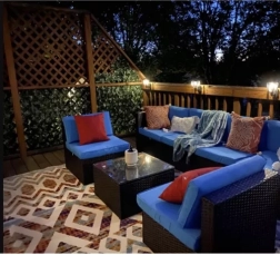 Poliestera un PP kombinācija nodrošina ilgu kalpošanas laiku un izturību pret laikapstākļu ietekmi balkonos, terasēs un dārzos.