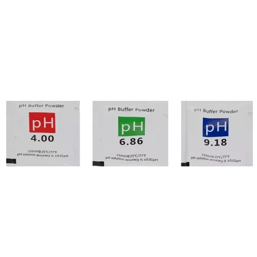 Iepakojumā atradīsiet 3 kalibrēšanas buferus (pH 4,00 / 6,86 / 9,18) un 3 baterijas, lai varētu sākt mērīt uzreiz.