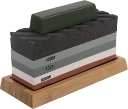 Graudainumi 400/1000/3000/8000 aptver gan agresīvu materiāla noņemšanu, gan smalku pulēšanu. Ātra asmens atjaunošana un perfekts gala izslīpējums vienuviet.