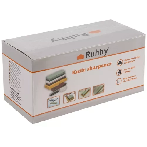 Ar šo profesionālo RUHHY ūdens akmeņu komplektu jūs viegli sasniegsiet nevainojami asu asmeni. Graudainumu kombinācija 400/1000/3000/8000 aptver visu procesu no ātras materiāla noņemšanas līdz spoguļgludai nopulēšanai. Pretbuksēšanas paklājiņi un bambusa pamatne nodrošina stabilitāti, vadotnes palīdz noturēt pareizo asināšanas leņķi, bet ādas siksna ar pastu piešķir asmenim galīgo spīdumu.
