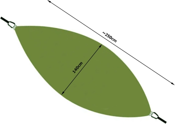 Komplektā ir viss nepieciešamais ātrai uzstādīšanai – izturīgas karabīnes, stipras auklas piestiprināšanai pie kokiem un moskītu tīkla satveršanai/novilkšanai. Integrētā kabata der sīkumiem un vienlaikus kalpo kā apvalks ērtai iepakošanai. Ar nestspēju līdz 150 kg un izmēriem 250 × 140 cm tas sniedz komfortu vienai līdz divām personām.