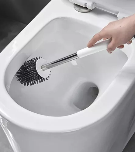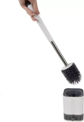 Silikona tualetes birste ar statīvu un dozatoru, melna 40 cm