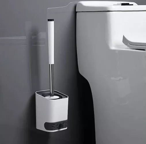 Silikona tualetes birste ar sienas turētāju RUHHY, balta