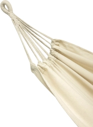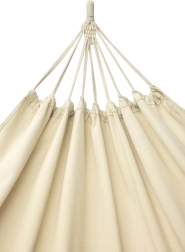 Izturīga konstrukcija: Pateicoties augstas kvalitātes kokvilnai un poliesteram, šūpuļtīkls ir ļoti izturīgs un nodrošina līdz pat 120 kg kravnesību. Salocītā veidā tas aizņem maz vietas, un to ir viegli uzglabāt, izmantojot komplektā iekļauto pārvalku.