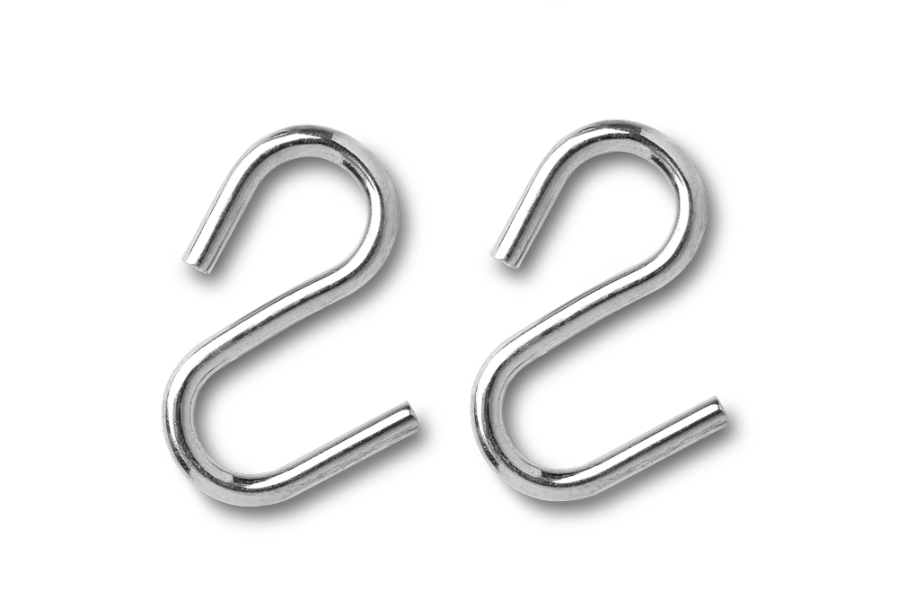 Ar metāla S veida āķiem šūpuļtīkla uzstādīšana ir ātra un vienkārša.