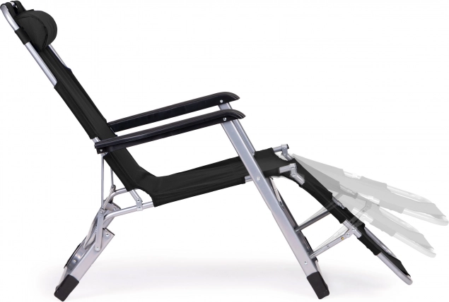 Ergonomiku uzlabo mīksts galvas spilvens kaklam un galvai, 3 pozīciju kāju balsts un praktiski roku balsti. Pretslīdes kājiņas pasargā virsmu no skrāpējumiem un palielina stabilitāti atpūtā un sauļojoties.