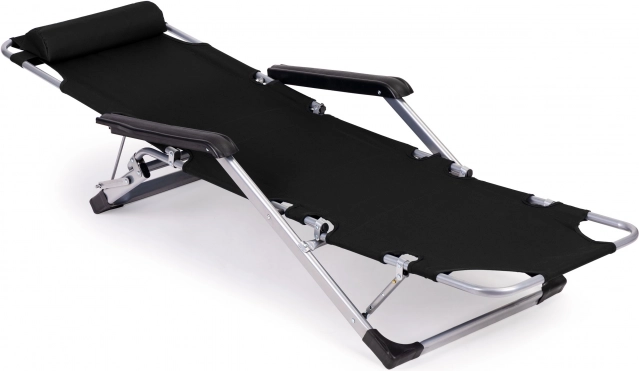 Metāla rāmis, pret slīdēšanas uzgaļi un 3 pozīciju kāju balsts drošam komfortam. Atpūtas gultu ātri salocīsiet un pārnesīsiet.