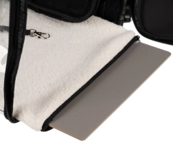 Noņemama mīksta ieliktne ar pastiprinātu apakšu un iekšējā drošības karabīne nodrošina dzīvnieka komfortu un aizsardzību ceļojuma laikā.