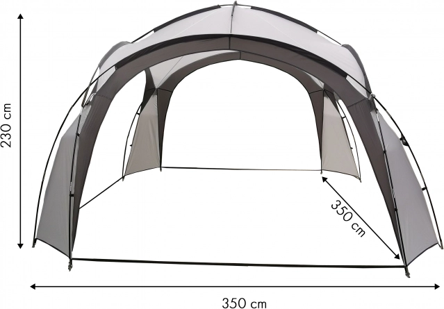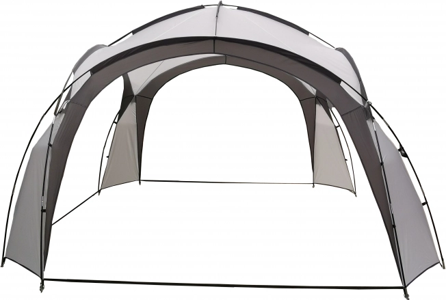 Izveidojiet uzticamu telpu ģimenes svinībām, grilēšanai un sezonas pasākumiem. Šis elegantais pelēkais paviljons apvieno vieglumu, stabilitāti un izturību pret laikapstākļiem. Atvērtā konstrukcija nodrošina lielisku gaisa plūsmu, savukārt veidotie loki efektīvi novada lietus ūdeni sānos.