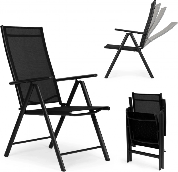 Krēslus var ātri salocīt līdz kompaktiem izmēriem, tāpēc tos ir viegli uzglabāt vai paņemt līdzi uz pikniku vai grilēšanu. Pretslīdes un aizsarguzlikas sargā grīdu no skrāpējumiem. Mūsdienīgais melnais dizains lieliski iederas terasēs, balkonos un dārzos, kā arī āra ēdināšanas vietās.