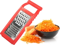 Komplektā ir trīs veidu asmeņi: griešanai, rupjai un smalkai rīvēšanai. Pateicoties āķiem balstīšanai uz bļodas vai katla, darbā ir stabilitāte un brīvas rokas. Rīve ir ideāli piemērota dārzeņiem, augļiem un sieram, un pēc lietošanas to viegli noskalot.