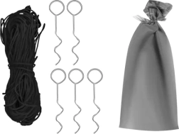 - Stabila konstrukcija: stiklašķiedras stieņi, iespēja nostiprināt ar auklām un mietiņiem