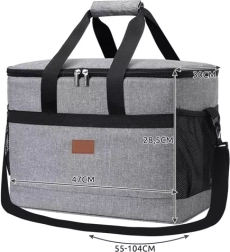 Maksimālam nēsāšanas komfortam soma aprīkota ar izturīgiem rokturiem ar lipekļa savilci un noņemamu regulējamu siksnu (55–104 cm). Divvirzienu rāvējslēdzējs atvieglo piekļuvi, sānu tīkla kabatas un priekšējā kabata ir piemērotas sīkumiem. Divi iekļautie dzesēšanas akumulatori jāiesaldē, un tie pagarina dzesēšanas laiku somas iekšpusē.