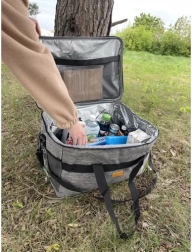 Pelēka 20 l termosoma ir ideāli piemērota izbraucieniem, piknikiem, pie ūdens un saldētu produktu iegādei. Ārējais Oxford audums ir izturīgs un ūdensizturīgs, iekšpusi veido termoizolējoša folija un biezas sienas ar EVA putām, kas efektīvi stabilizē satura temperatūru. Iekšpuse ir higiēniska, neuzsūc smakas un ir ļoti viegli kopjama.