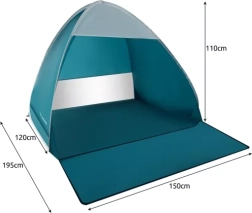 Izbaudiet komfortu un drošību patīkamā ēnā ar pludmales telti Trizand. Tās pašizplešanās konstrukcija no anodētiem stieplēm nodrošina, ka, izņemot no iepakojuma, telts acumirklī pati izplešas. Jūsu lietas būs drošībā bez bailēm, ka tās aizbērs smiltis.