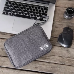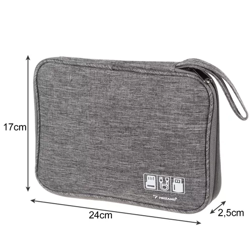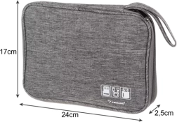 Aizmirstiet par samezglojiešiem kabeļiem un jucekli somas apakšā. Šis parocīgais organizators apvieno vieglu un izturīgu poliestera materiālu ar praktisku dalījumu, lai USB kabeļus, lādētājus, austiņas un pārejas glabātu droši un pārskatāmi. Kompaktie izmēri 24 × 17 × 2,5 cm lieliski ietilpst somā vai rokas bagāžā.