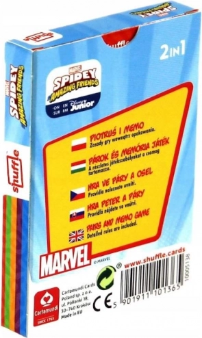 Komplekts ar 25 kartītēm ar varoņiem no seriāliem “Spidey un superdraugi”, kas ļauj spēlēt divas kāršu spēles – “Melnais Pēteris” un “Memo”, kuras attīsta loģisko domāšanu pašiem mazākajiem bērniem. Spēles mērķis ir atrast pēc iespējas vairāk pāru.