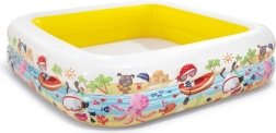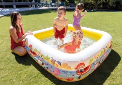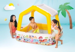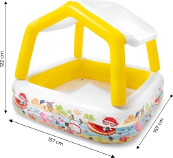 Uzpūšamais baseins ar jumtiņu INTEX ir ideāls bērnu vasaras atvēsināšanai dārzā. Kvadrātveida forma ar izmēriem 157 × 157 cm un augstumu 122 cm nodrošina pietiekami daudz vietas rotaļām, savukārt ietilpība 280 l pie 20 cm ūdens līmeņa garantē drošu un ērtu izklaidi. Izturīgs vinils (0,25 mm) un mīkstās uzpūšamās sienas palielina komfortu un drošību.