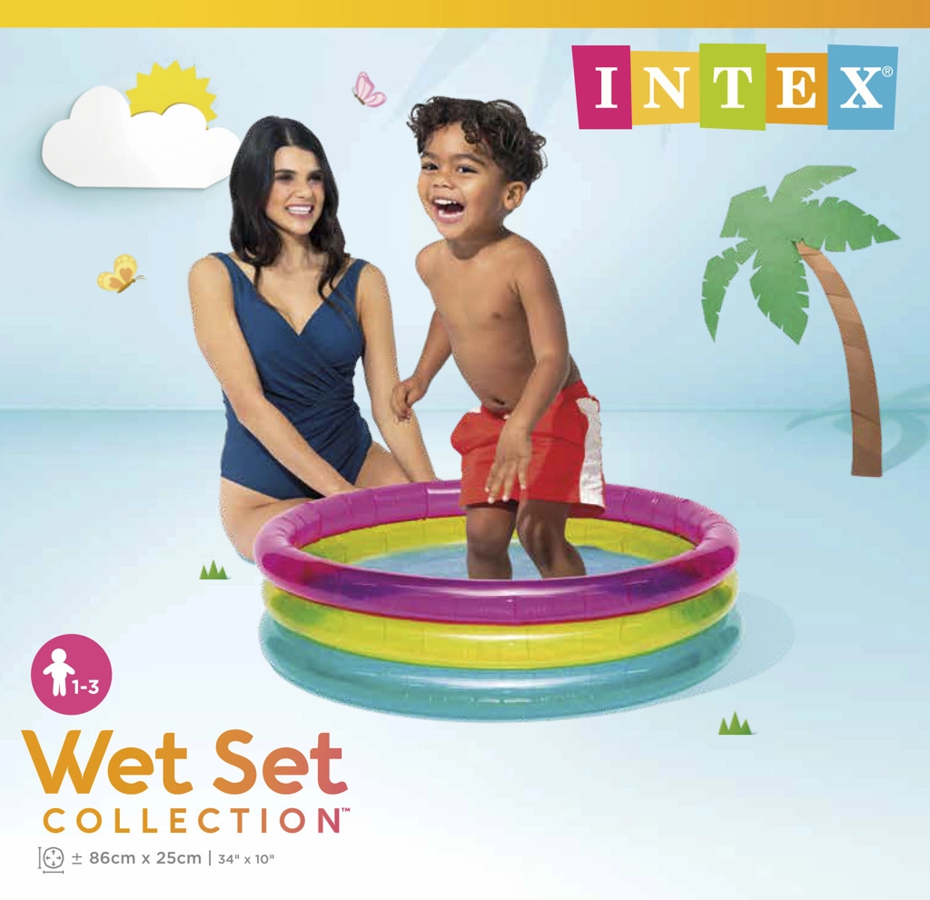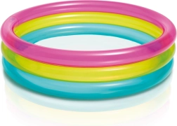 Uzpūšamais bērnu baseins INTEX Rainbow ir košs un praktisks palīgs vasaras dienām. Pateicoties trim caurspīdīgiem gredzeniem tas ir stabils un ērts, savukārt kompaktie izmēri 86 × 25 cm der lielākajai daļai dārzu, terasu un balkonu. Ietilpība 68 litri pie ieteiktā ūdens līmeņa 17 cm nodrošina drošu un seklu ūdens laukumu mazuļiem.