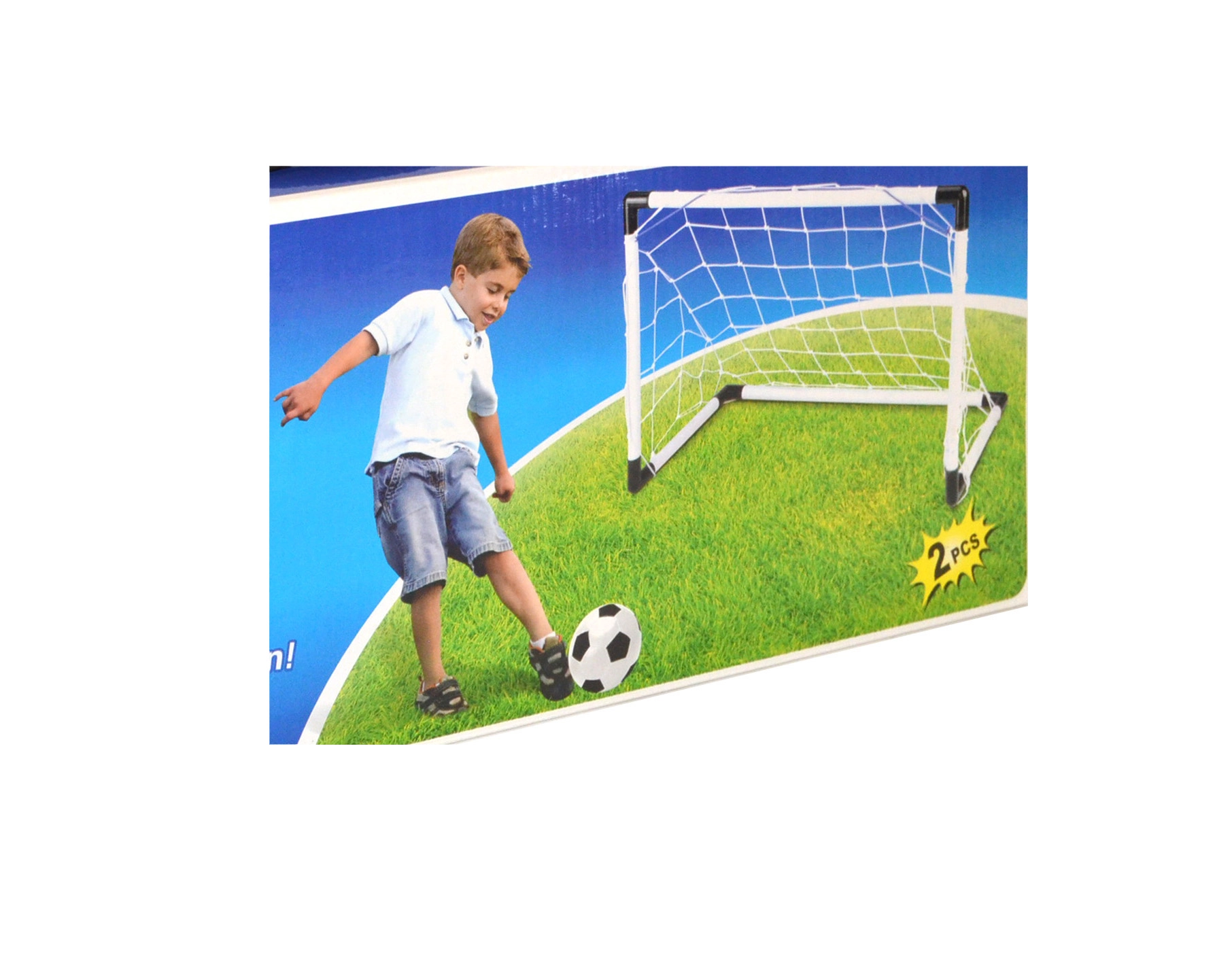 Perfekta izvēle mazajiem futbola entuziastiem! Šajā komplektā ir divi plastmasas vārti, kas ir praktiski un viegli saliekami.
