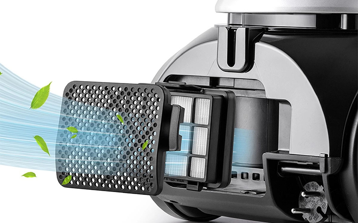Jaudīgs motors ar 600 W jaudu un 130 W sūkšanas jaudu tiek galā ar putekļiem, drupačām, spalvām un netīrumiem paklājos. Uzlabotais HEPA 12 filtrs aiztur pat ļoti smalkas daļiņas, tāpēc gaiss mājās ir tīrāks un svaigāks. Putekļsūcējs darbojas klusi (ap 68 dB), tāpēc netraucē mājiniekus un mājdzīvniekus.