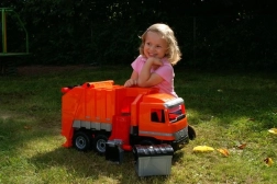 Atkritumu vedēja modelis ir veidots tā, lai atdarinātu īstās funkcijas, tostarp atkritumu iekraušanu un izkraušanu.