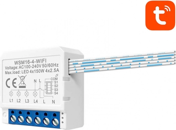 Gudrs Wi‑Fi slēdža modulis Avatto TUYA, 4 kanāli