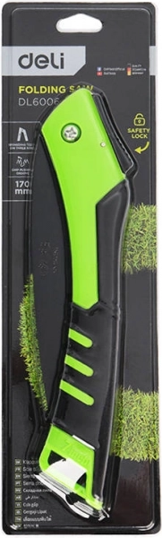 Kompakts saliekamais zāģis Deli Tools ātrai koksnes zāģēšanai. Pateicoties 170 mm garumam, tas ir viegli pārnēsājams un vienmēr pa rokai. Tas piedāvā drošības slēdzeni pret nejaušu salocīšanos, izturīgu izpildījumu un ērtu ergonomisku rokturi drošam satvērienam pat ilgstoša darba laikā.