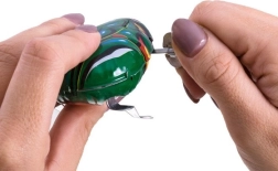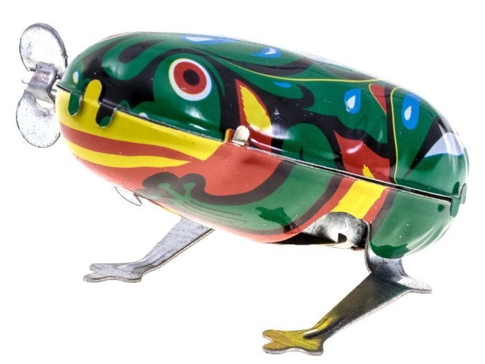 Šī mīlīgā rotaļlietu vardīte ir izgatavota no metāla skaistā zaļā krāsā un darbojas ar atsperes mehānismu, ko uzvelk ar atslēdziņu. Vardīte raisa smaidu visām paaudzēm. Pateicoties nelielajiem izmēriem, tā ērti ieguļ bērna plaukstā un ir lieliska jautriem brīžiem, piemēram, kad tā paslēpta somiņā. Pārliecinieties, ka jums tā ir kā laimes talismans!
