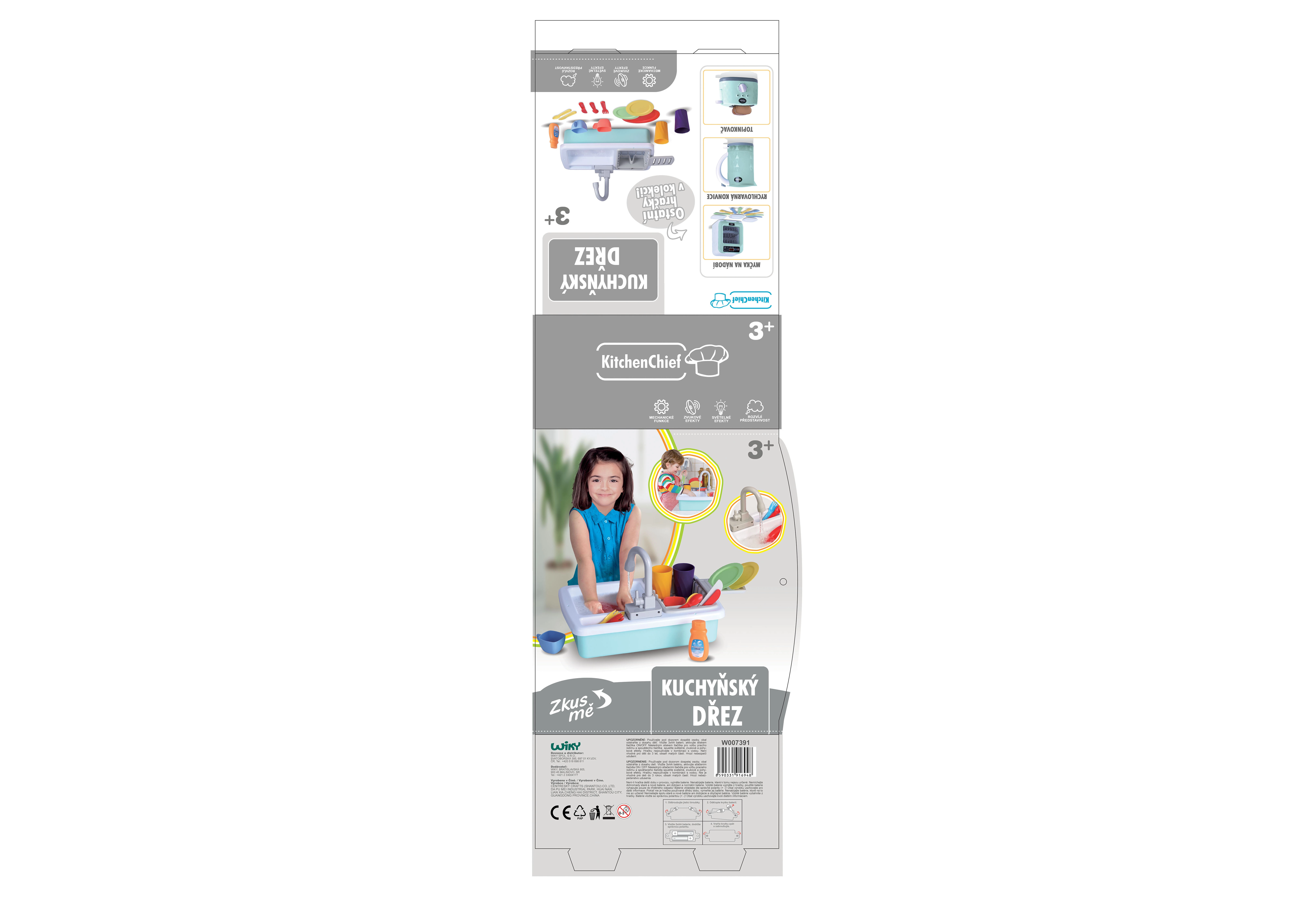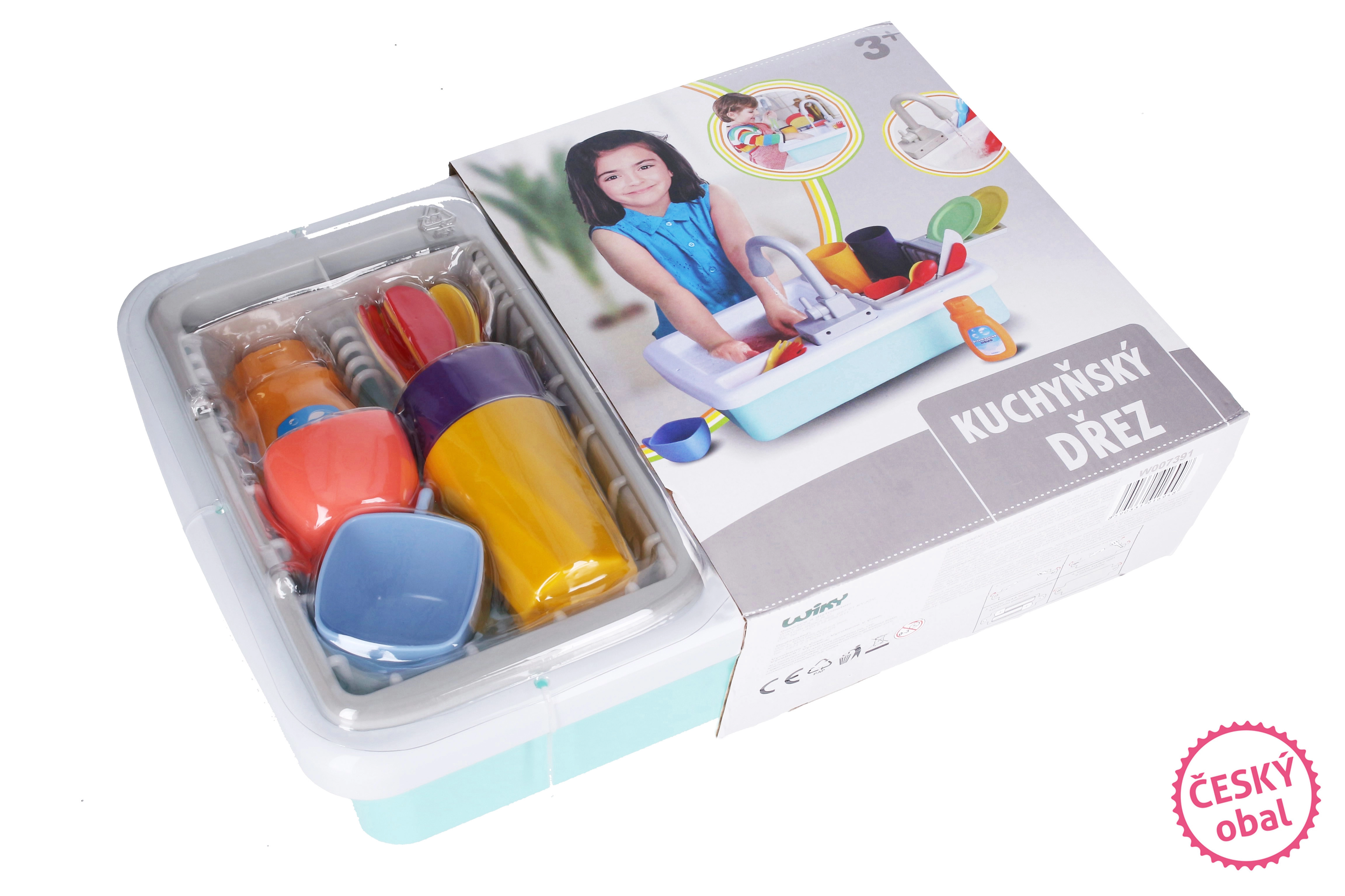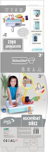 Iepakojumā ietilpst praktiski virtuves piederumi, ar kuriem bērni var sākt uzreiz: krūzītes, šķīvji, tasītes, galda piederumi, kā arī trauku mazgāšanas līdzeklis vēl reālistiskākai spēlei. Izlietne ir lielisks papildinājums jebkurai bērnu virtuvei un nodrošinās izklaidi ilgam laikam.