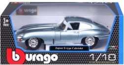 Metāla automašīnas modelis 1:18 BBURAGO JAGUAR E‑Type Coupé sudrabaini zilā krāsā