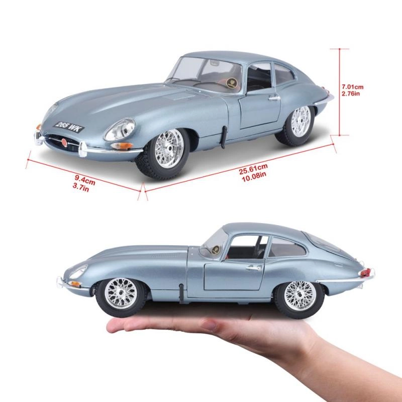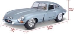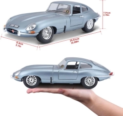 Die‑cast izpildījums ar daudziem smalkiem sīkumiem, hromētiem elementiem un autentiskām leģendārā E‑Type proporcijām.
