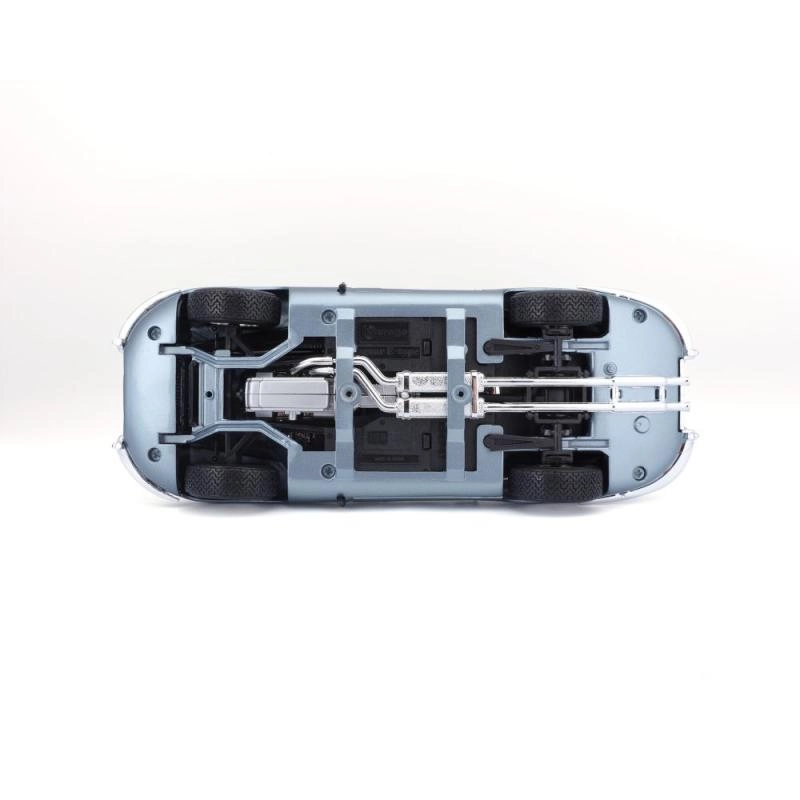 Ikoniska klasiska automašīna 1:18 mērogā kā detalizēts kolekcionāru modelis no zīmola Bburago. Metāla virsbūve, atveramas durvis un motora pārsegs, pilnībā funkcionāla priekšējo riteņu grozīšana ar stūri un sudrabaini zilā metāliska krāsa autentiskam izskatam. Lieliska izvēle kolekcionāriem un veterānu entuziastiem.