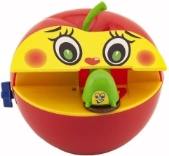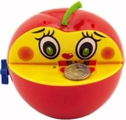 Šī plastmasas krājkase atdarina iecienīto ābolu un ir ideāli piemērota bērniem no trīs gadu vecuma. Pateicoties mehāniskajai uzvilkšanai ar atslēdziņu, lietošana ir jautra un vienkārša. Iemetot monētu, tārpiņš to satver un nogādā ābola iekšpusē, motivējot bērnus krāt.