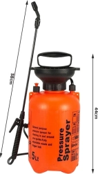 Universāls rokas spiediena smidzinātājs 5 l ar garu šķēpu un plecu siksnu atvieglo augu kopšanu mājās, dārzā un augļu dārzā. Tas piedāvā regulējamu sprauslu, 58 cm šķēpu, 120 cm šļūteni, tilpuma skalu un maks. spiedienu 3 bāri precīzai un ērtai mēslojuma un augu aizsardzības līdzekļu uzklāšanai.