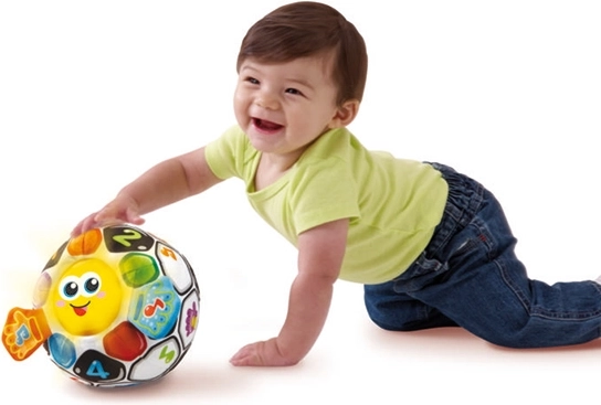 Pateicoties savām spējām, bumbiņa prot ripot bērnu priekšā, piesaistot viņu uzmanību un motivējot vērot, rāpot un rotaļāties. Šis krāsainais futbola bumbulis ar dažādām tekstūrām un skaņas efektiem ne tikai attīsta maņas, bet arī nodrošina taustes stimulāciju ar maigu plīša pārklājumu. Gaismas un skaņas efekti kopā ar spīdošo sejiņu un oranžajām pogām palīdz apgūt krāsas.