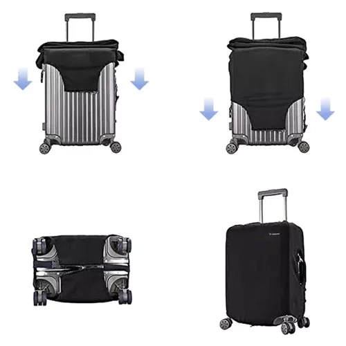 Elastīgais sastāvs (poliesters + spandekss) nodrošina teicamu piegulšanu dažāda tipa cietajiem un tekstila koferiem. Apakšējā aizdare ar rāvējslēdzi un regulējama gumijas siksna ar sprādzi stingri notur pārvalku savā vietā un novērš tā noslīdēšanu.