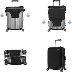 Pateicoties precīziem izgriezumiem augšējiem un sānu rokturiem, kā arī teleskopiskajam kātam, koferi var ērti lietot, nenoņemot pārvalku. Melna krāsa izskatās eleganti un vienlaikus atvieglo personalizēšanu un ātru atpazīšanu uz lentas. Piemērots vidējiem L izmēra koferiem diapazonā 67–70 × 45–50 × 26–30 cm.