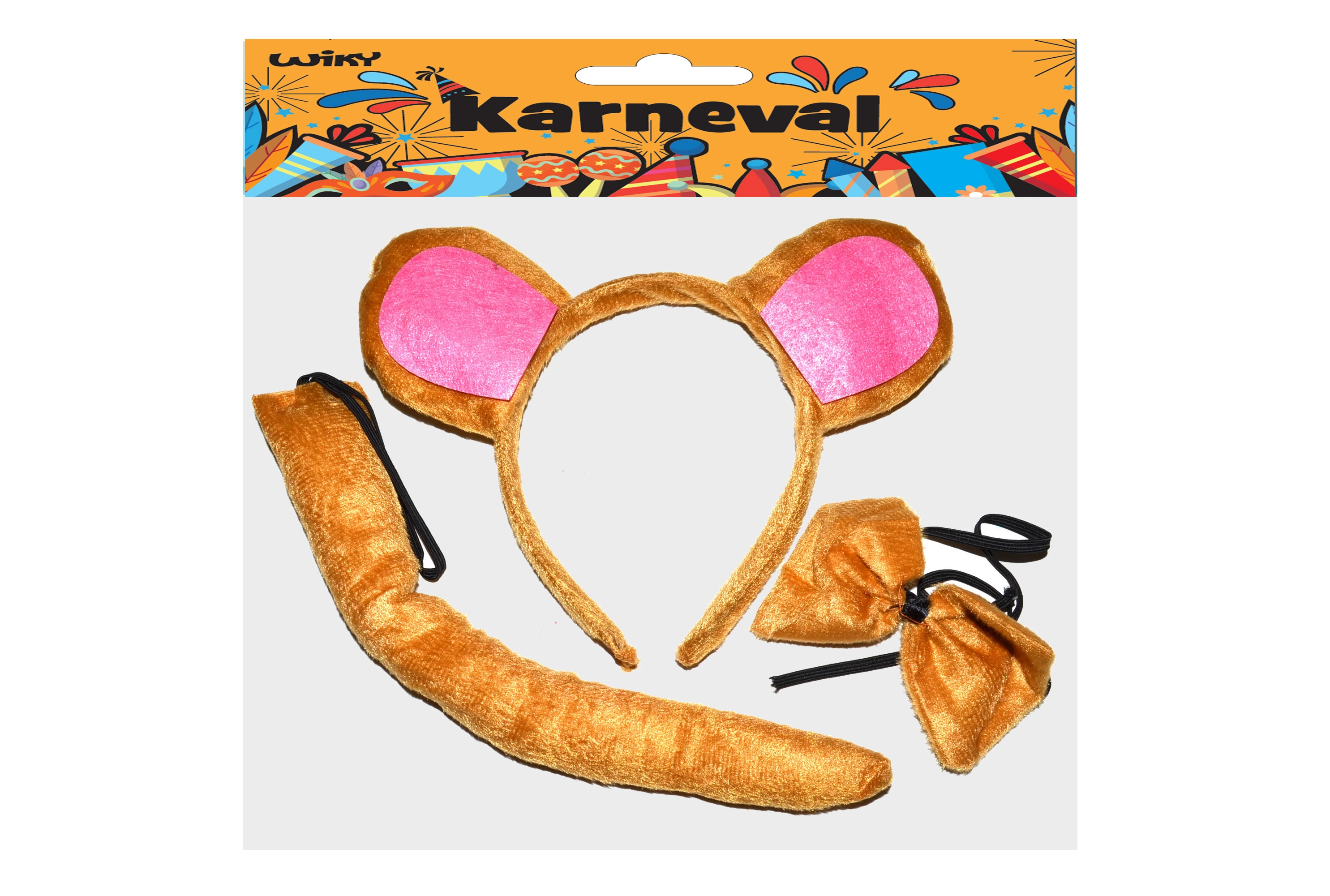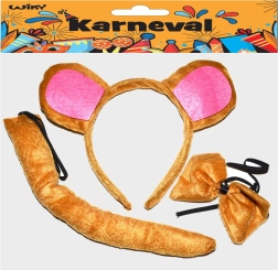 Pārvērties mīlīgā pērtiķītī dažu mirkļu laikā! Šis karnevāla komplekts satur visu nepieciešamo ātrai un ērtai pārvērtībai – stīpiņu ar austiņām, tauriņu ap kaklu un saskaņotu asti. Lieliski piemērots karnevāliem, bērnu svinībām un skolas pasākumiem. Piemērots bērniem no 3 gadu vecuma.